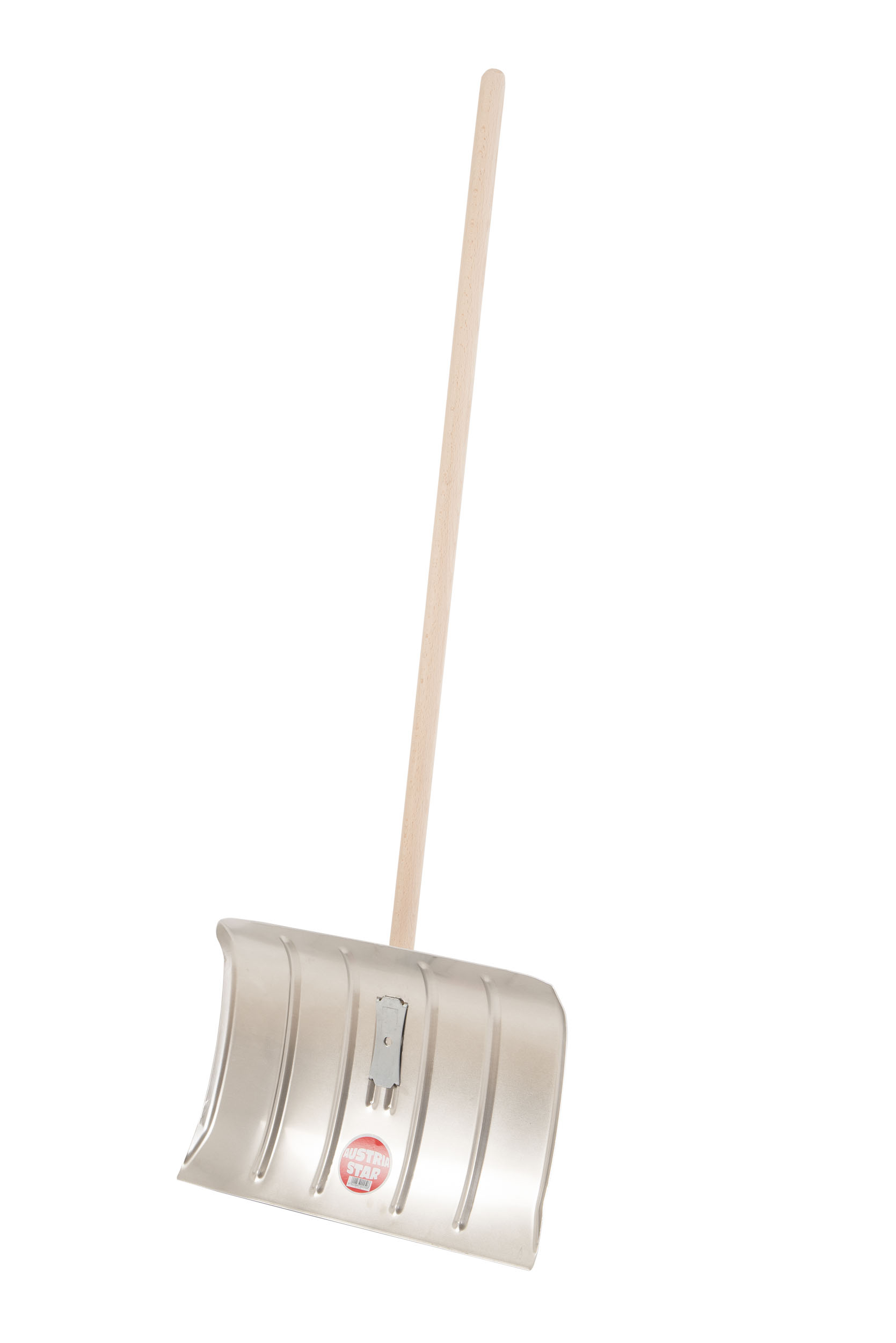 The Austria Star aluminium pusher has a ribbed blade and a 130 cm long wooden handle, which is attached to the blade with a metal clip.
