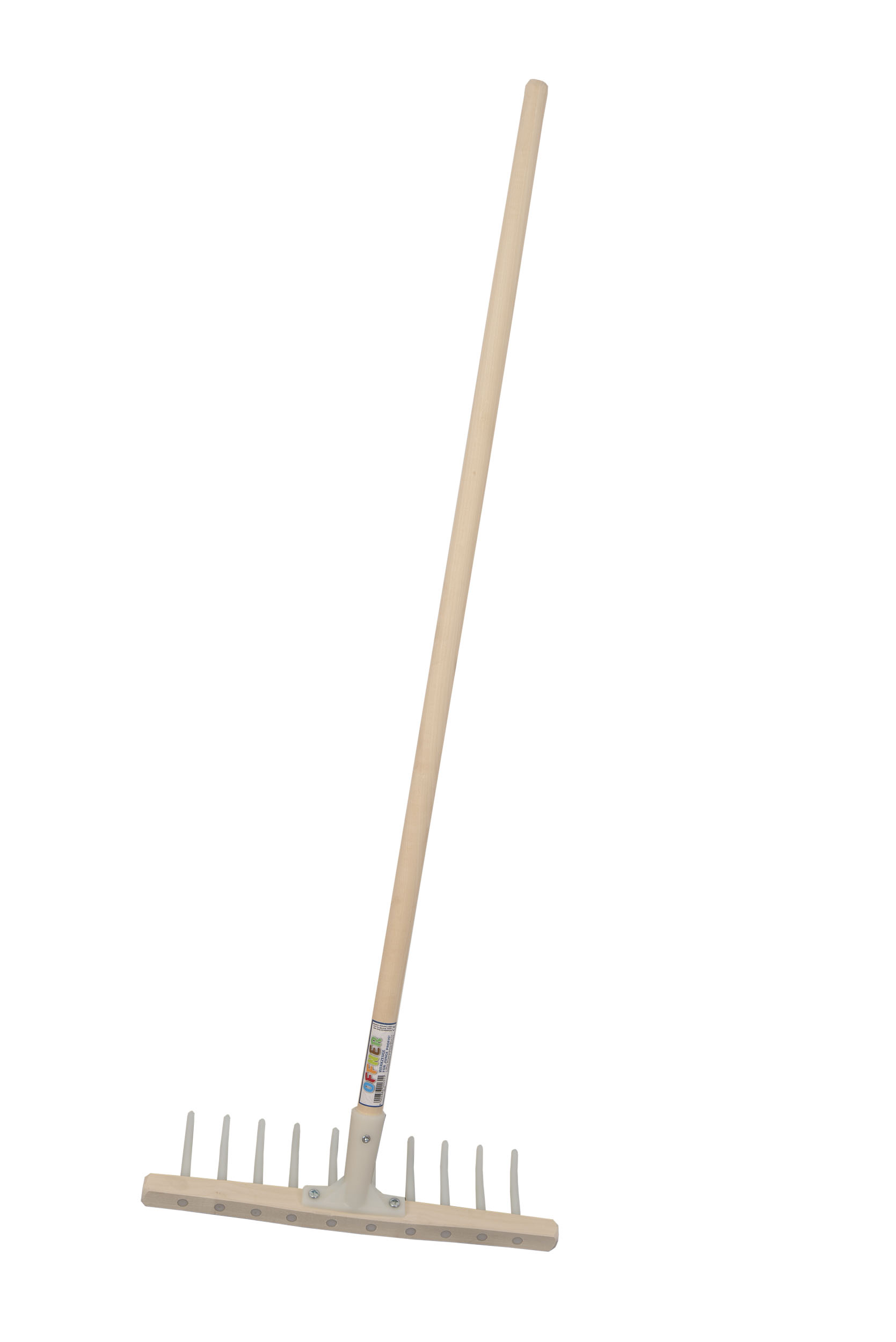 The Offner childrens wooden hay rake has 10 prongs and comes with a 100 cm wooden handle and a colourful childrens label.