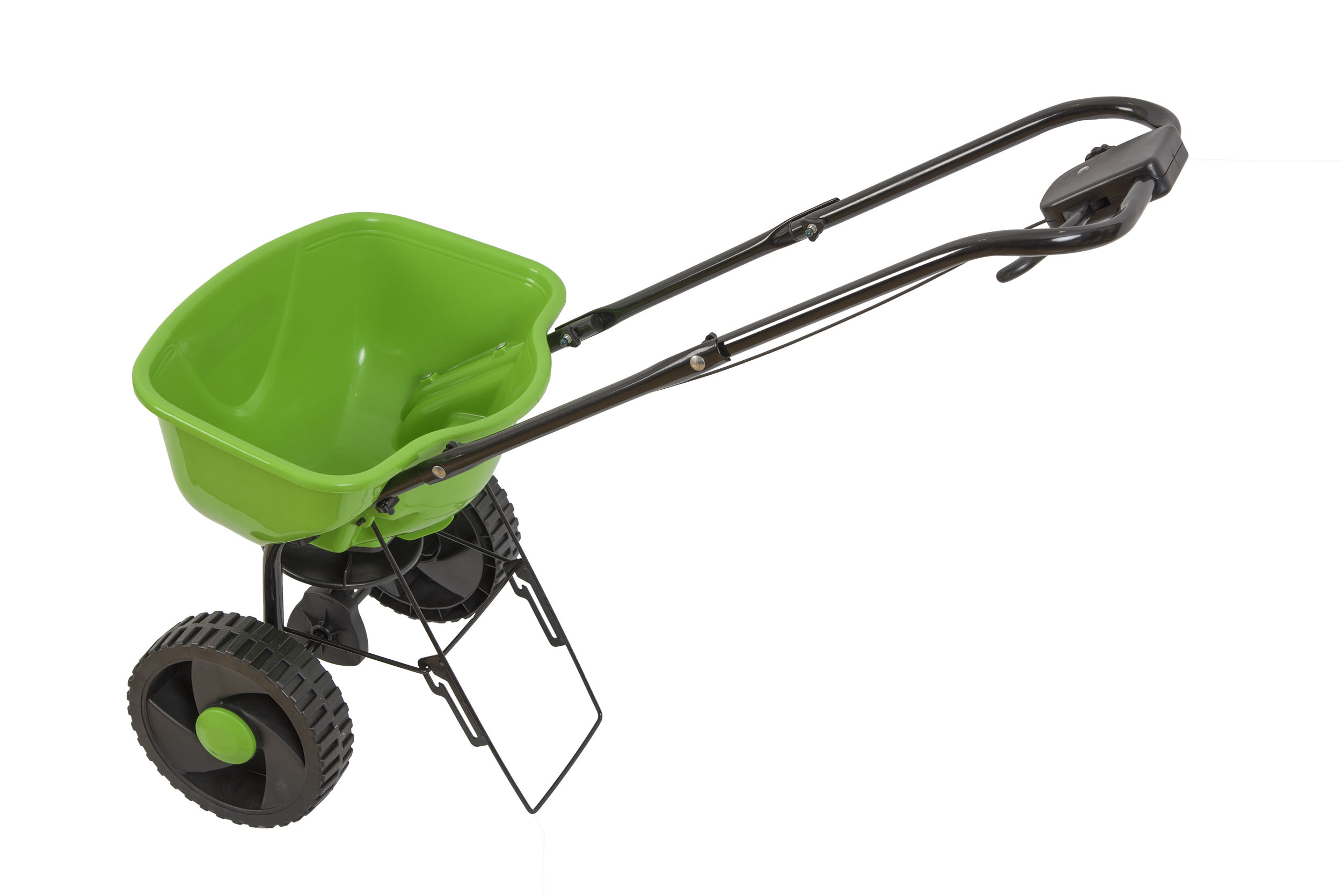The Freund 15 litre spreader has continuously adjustable spreading control, a spreading range of 2-3 metres and a dead mans handle to stop spreading. The spreading bucket has a capacity of 15 litres and is suitable for distributing products with a grain size of 5 mm.