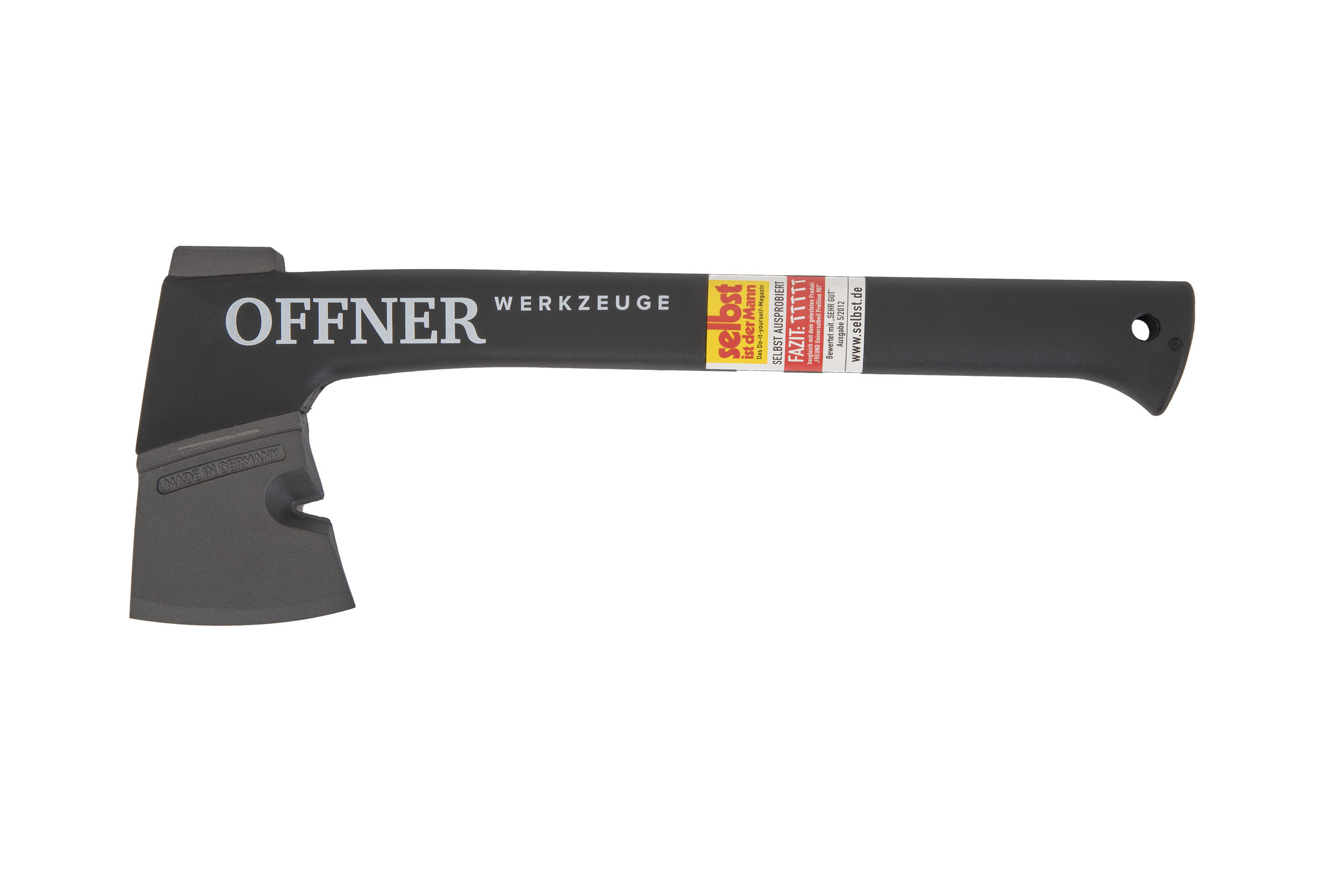 The Offner Profi Line 907 axe has the perfect ratio of head weight to handle length for optimum splitting force, which makes chopping and splitting an efficient and low-effort process. The non-detachable connection between the axe head and handle ensures a high level of safety It also has an extra-sharp blade made from double-hardened steel with a high-grade outer coating and a long-lasting handle made from weather-resistant, fibreglass-reinforced plastic. It can be used for outdoor activities, for slicing and for preparing campfires.