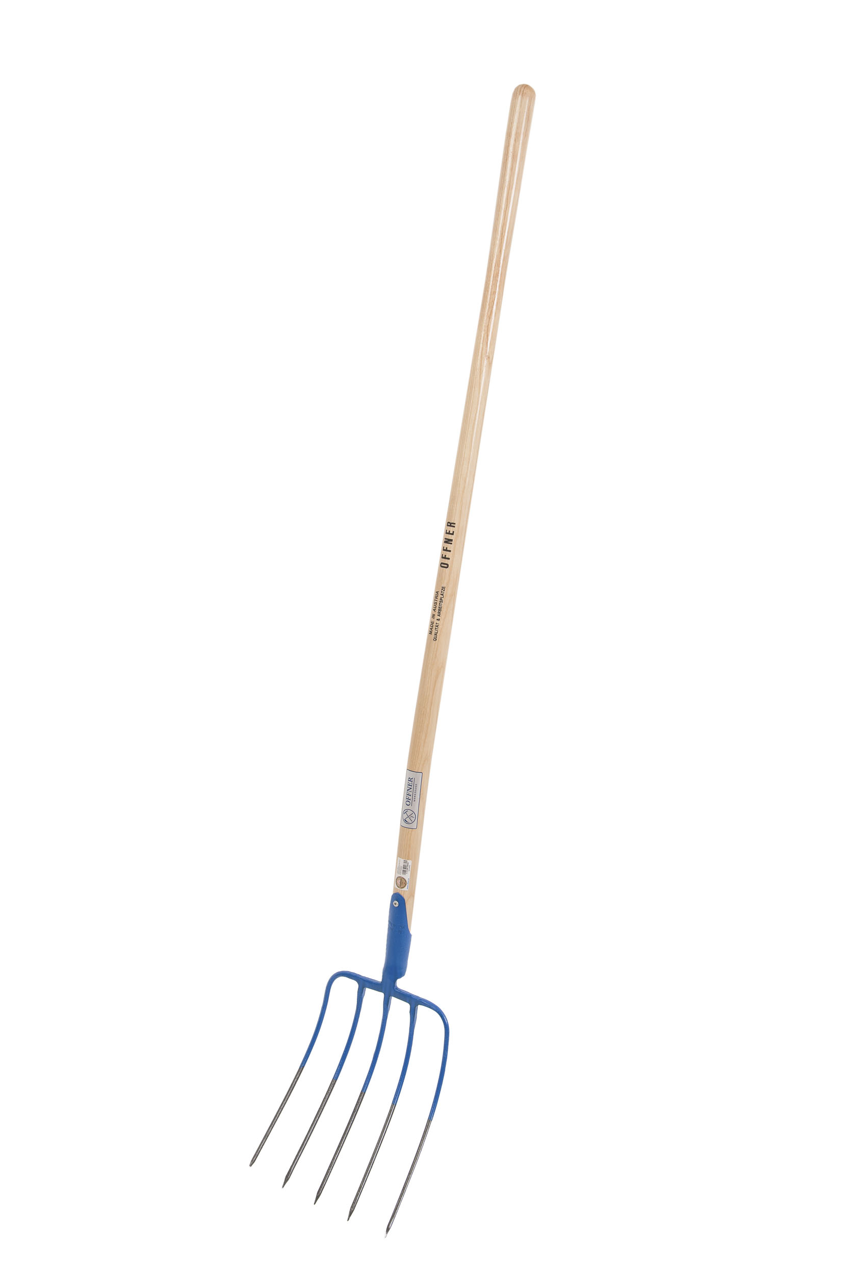 Die Offner-Dunggabel mit 5 Zinken eignet sich zum Umschichten von Dung, aber auch für Kompost- oder Gartenabfälle. Die Dunggabel hat ein Breite von 25 cm und ist mit einem 135 cm Eschenstiel bestückt.