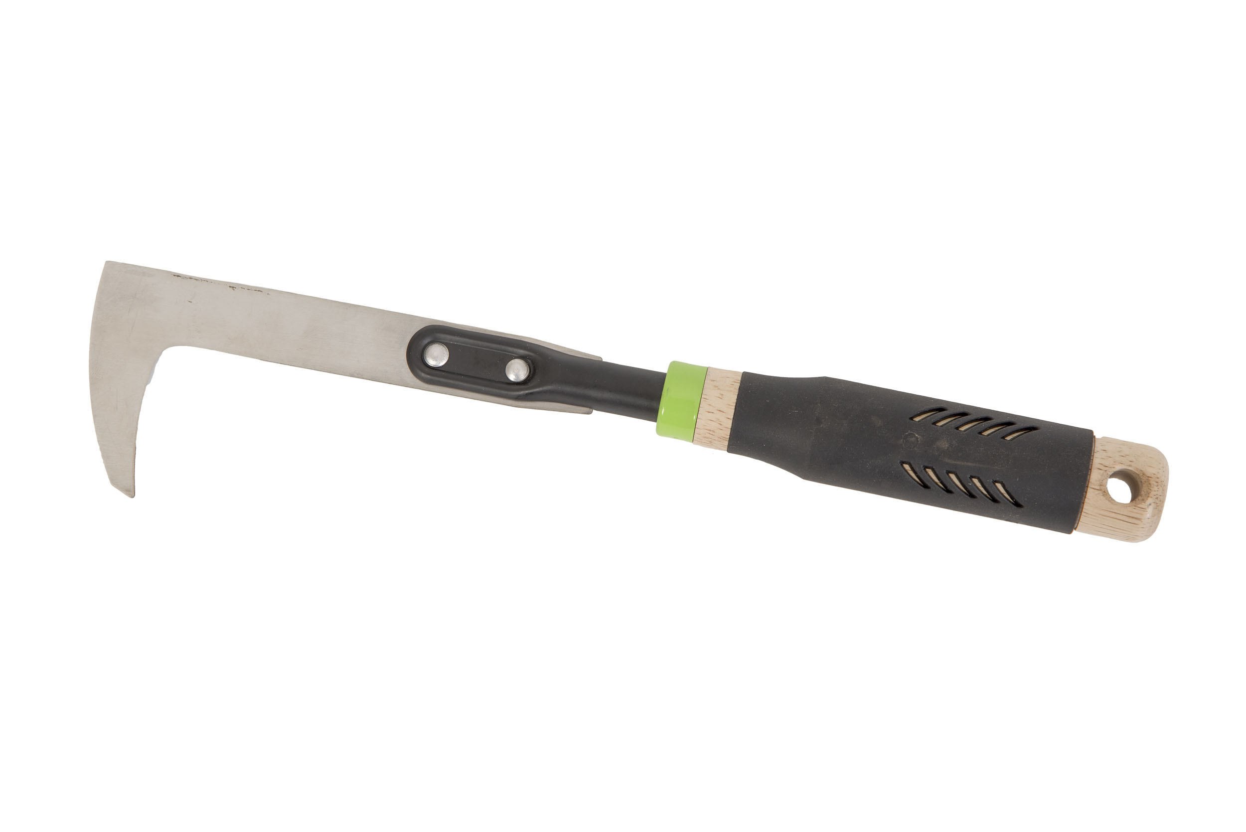 Der Freund Fugenkratzer 491 aus Stahl ist pulverbeschichtet, hat einen Eichenholzgriff und eine angeschliffene Schneide.