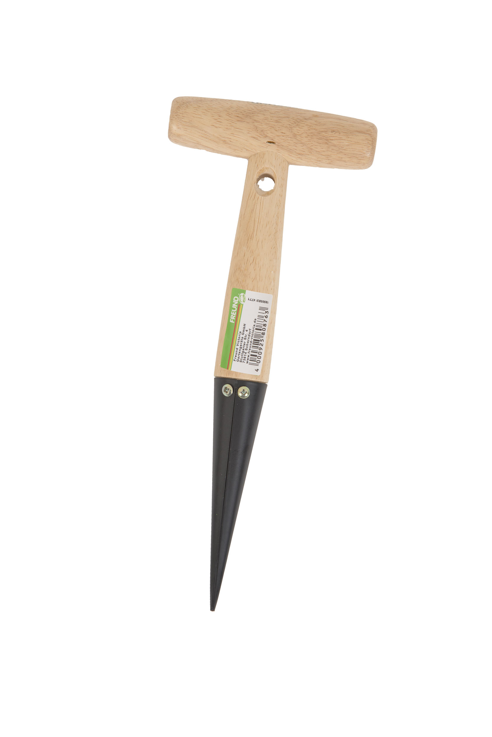 Das Freund Pflanzholz 4771 hat einen Holz-T-Griff und eine Gesamtlänge von 28 cm.