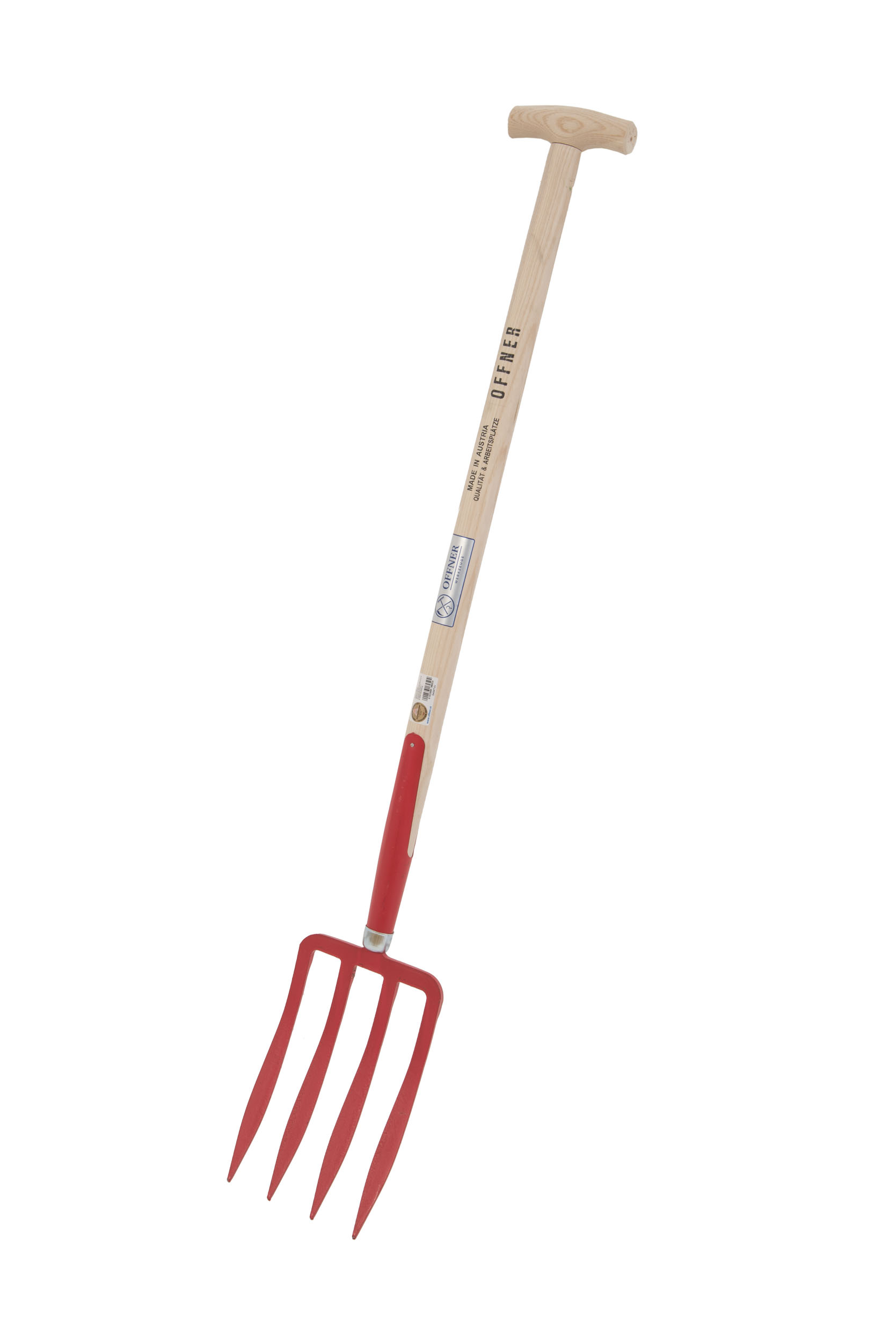 Die Offner-Spatengabel mit Schienenzwinge hat 4 geschmiedete Lanzenzinken, eine Arbeitsbreite von 17 cm und ist mit einem 85 cm Eschen-T-Stiel ausgestattet. Durch die breiten Lanzenzinken ist ein einfaches Eindringen in die Erde möglich. Sie eignet sich ideal zur Bodenlösung oder Lockerung, ohne dabei die Pflanzenwurzeln erheblich zu beschädigen. Die Gabel kann auch anstelle eines Spatens zum Umgraben verwendet werden.